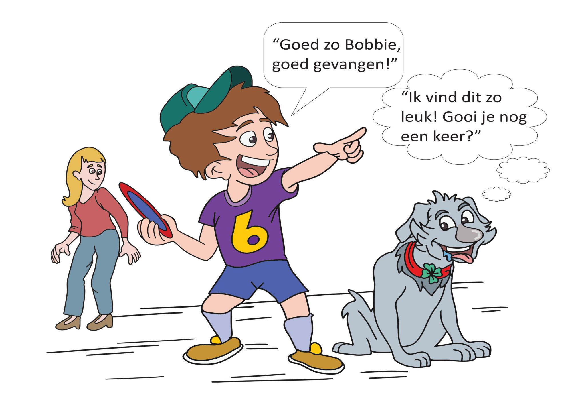 Op het linkerplaatje kun je zien dat Bobbie heel erg fanatiek wordt als je een trek of stoeispel met haar speelt. Op het rechterplaatje kun je zien dat Bobbie het heel erg leuk vindt als je een vangspel met haar doet! Probeer wel altijd een van je ouders te vragen of ze even mee willen spelen.