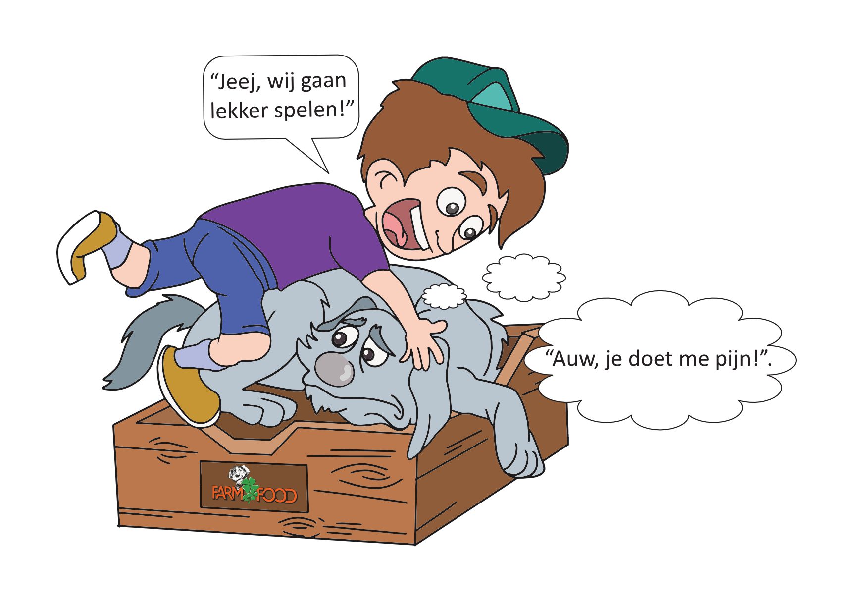 Op het linkerplaatje kun je zien dat Bobbie het niet fijn vindt als je zo maar boven op haar gaat liggen. Bobbie vindt het fijner als je rustig naast haar zit en dan met haar gaat spelen.