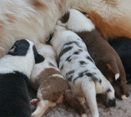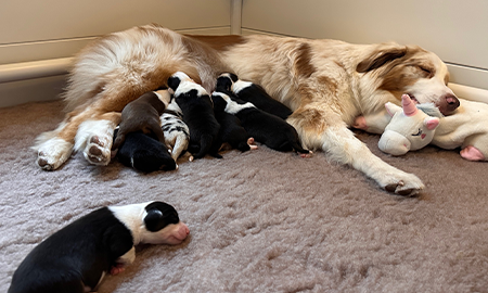 Toen Fien twee jaar oud was, is ze drachtig geworden. “Ik had nog niet eerder een nest pups grootgebracht en wilde ervoor zorgen dat zowel Fien als haar toekomstige pups de best mogelijke start zouden krijgen.” Bianca gaf aan dat ze op zoek was naar informatie over voeding en het soepel afspenen van de pups. Omdat ze dit erg belangrijk vond, heeft ze contact opgenomen met het voedingsteam van Farm Food.