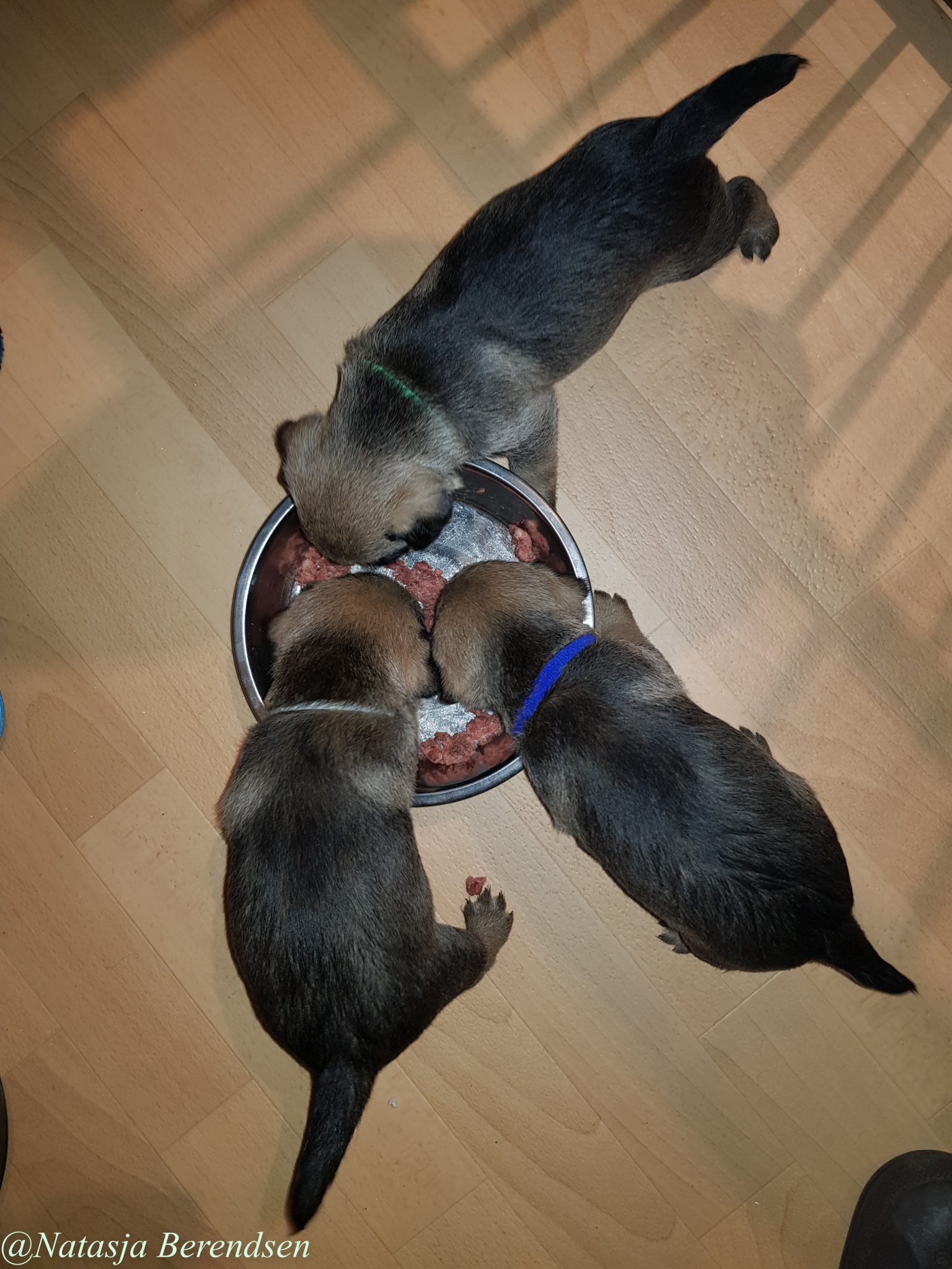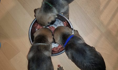 Omdat de Border Terriër gevoelig kan zijn voor gluten, proberen we onze pups een zo goed mogelijk opgebouwde darmflora mee te geven: Naast moedermelk, krijgen de pups opbouwend, puppymelk, Fresh diepvries rundvlees, Fresh diepvries pens en hart, HE brokken en niet te vergeten de trainers.