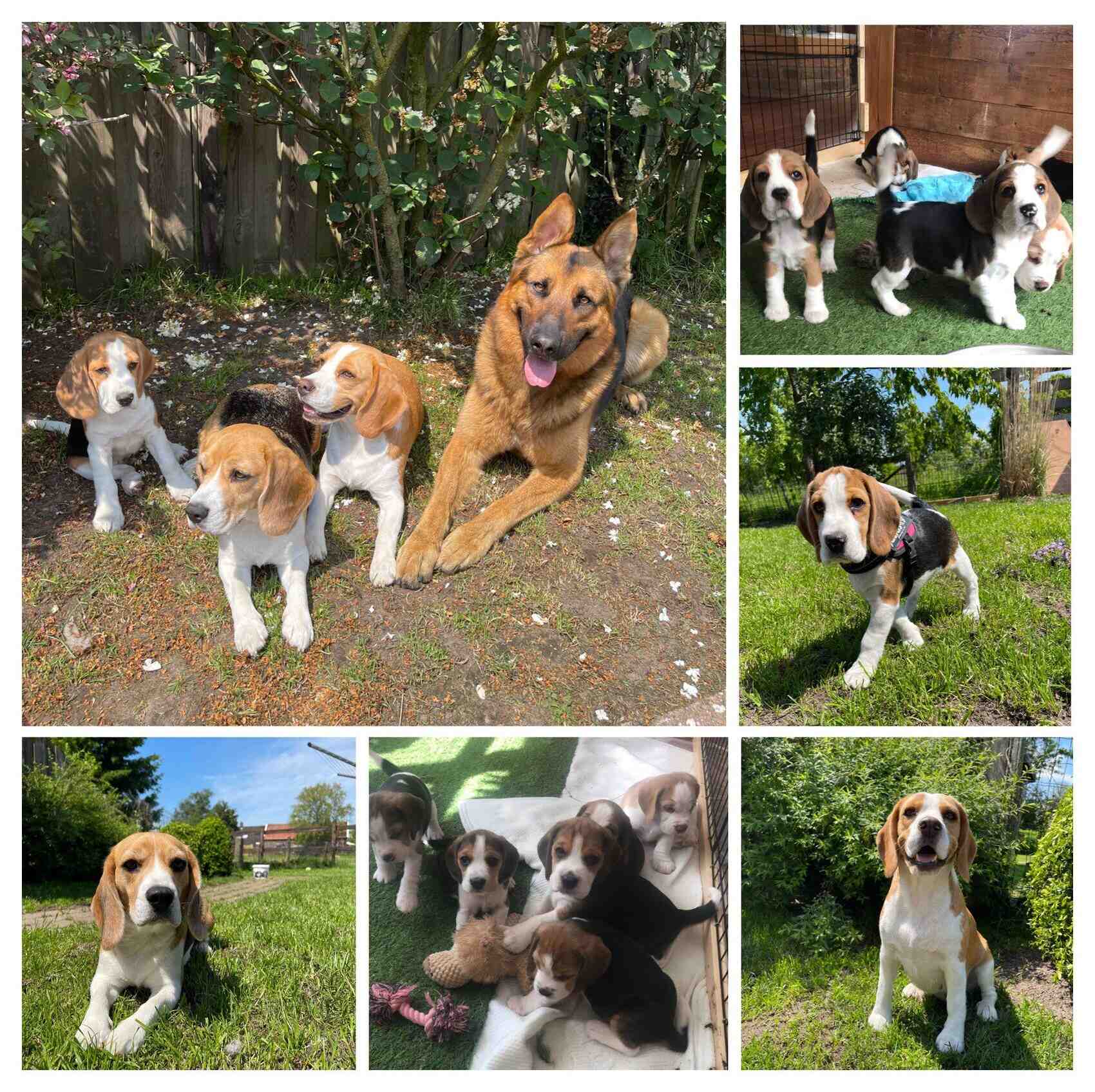 Wij zijn een kleinschalige fokker. 1 á 2 keer per jaar hebben wij een nestje Beagle puppy’s. Deze puppy’s groeien bij ons liefdevol in huis op. Wanneer het mooi weer is, kunnen ze spelen in de tuin. Ook de puppy’s worden gevoerd met voer van Farmfood. Onze leuke Duitse Herder wordt soms ingezet als dekreu. Naast dat er getraind en gefokt wordt met onze honden, zijn ze voornamelijk gezellige huishonden.