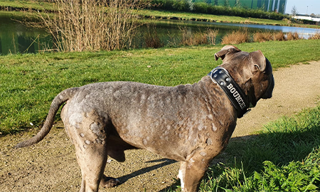“Ondertussen ging het echt heel slecht met Bouncer. Hele plukken haar lieten los. Zijn huid schilferde enorm. Ook zijn energie en levenslust daalde zienderogen. Op een geven moment kwam hij amper van zijn kussen om hem uit te laten terwijl ik voorheen achter hem aan moest rennen.” Lees hier het verhaal van Bouncer