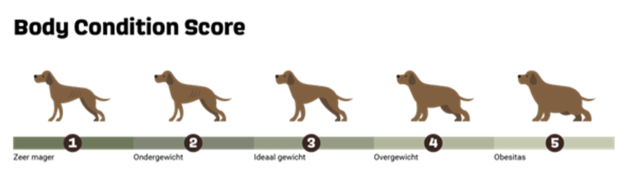 Inmiddels weten we dat overgewicht diverse gezondheidsproblemen tot gevolg kan hebben. Het is daarom belangrijk om kennis te hebben over wanneer een hond een gezond gewicht heeft of niet. Daarnaast blijkt dat hondeneigenaren soms moeite hebben met het herkennen en juist inschatten van het (over)gewicht bij hun hond. Het is belangrijk om kennis te hebben over wanneer een hond een gezond gewicht heeft of niet. De body condition score is hiervoor een handig hulpmiddel. Hiermee kun je snel herkennen wanneer je hond te dun of te dik is.