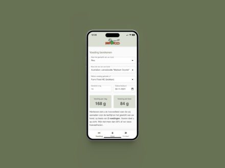Vul van jouw hond het geslacht, ras, gewicht en de geboortedatum in en kies voor welke Farm Food voeding (koudgeperste brok, diepvries vers vlees, zachtgestoomde maaltijd) jij een berekening wilt maken. Klik op ‘berekenen’ en de app toont direct de dagelijkse aanbevolen hoeveelheid voor jouw hond.